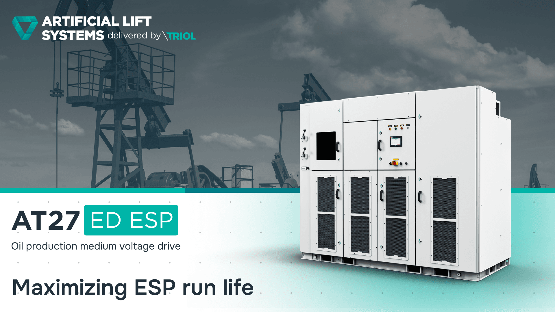 The Oil production medium voltage drive AT27 ED ESP is adapted for pumps and engineered to protect them.